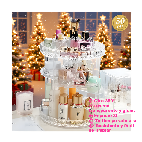 Diseñado pensando en tu rutina de belleza, su almacenamiento te permite acceder a cada artículo con un simple giro.